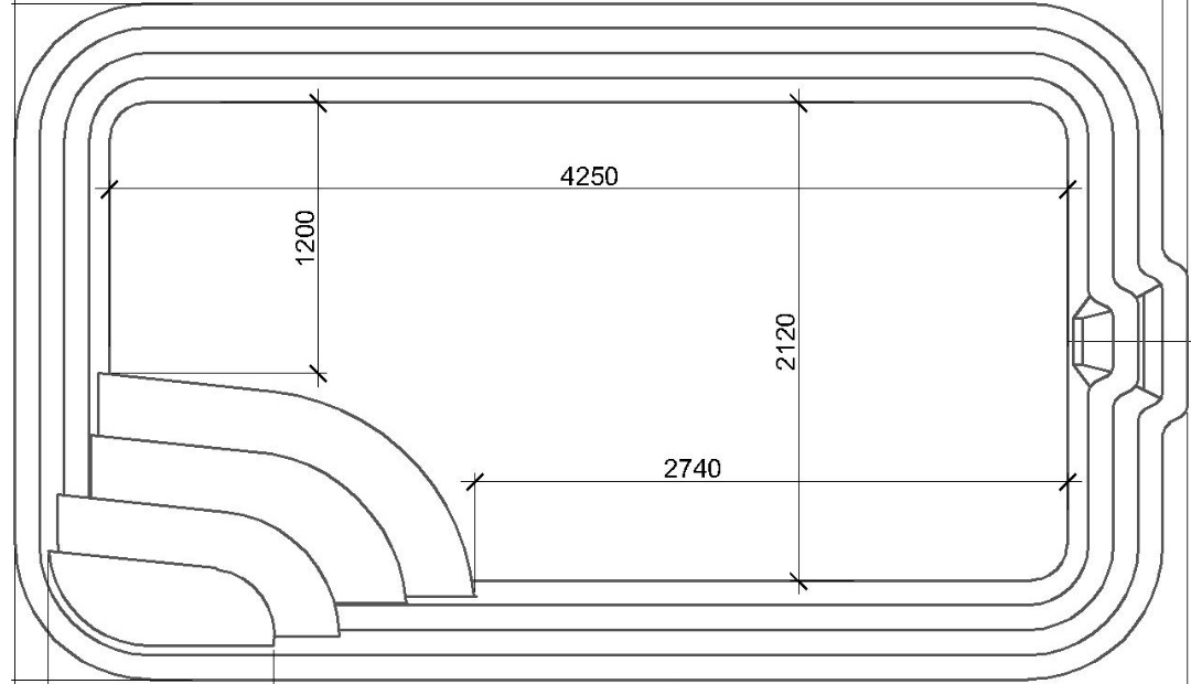 Der Polymerpool CALMUS ist die ideale Lösung für alle, die einen Ort der Entspannung in ihrem eigenen Garten schaffen möchten. Mit seiner rechteckigen Form und den praktischen Stufen entlang einer Seite bietet dieser Pool ausreichend Platz für Schwimmen und Wasserspiele. Die Stufen befinden sich in der Ecke des Pools, wodurch der Platz im Becken optimal genutzt wird. Ein besonderes Highlight dieses Modells ist die Fußleiste, die sich über die gesamte Länge des Pools erstreckt und zusätzlichen Komfort bei aktiven Wasseraktivitäten bietet.
