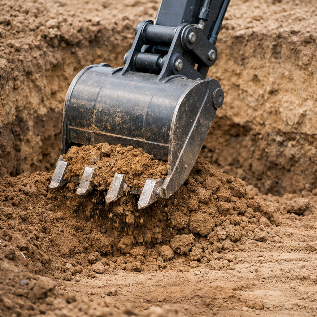 Professioneller Aushub der Baugrube für den ausgewählten Pool unter Berücksichtigung der erforderlichen Abmessungen, Höhen und technischen Montageanforderungen.