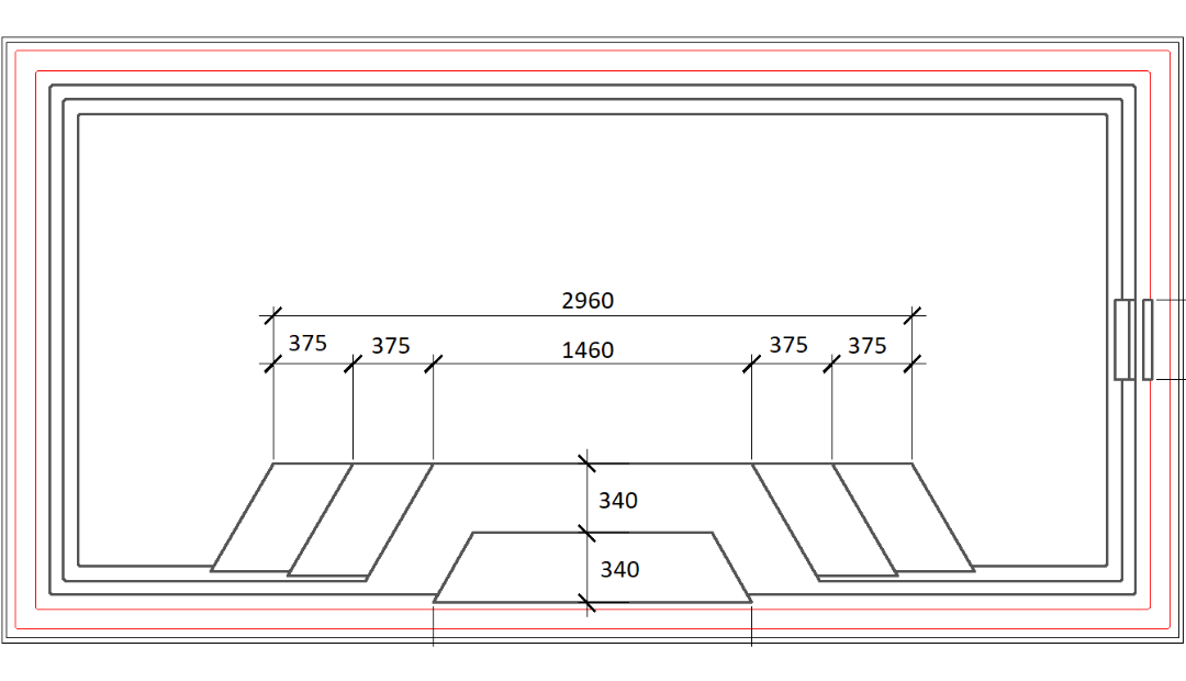 Basen wyposażony jest w unikalne schody w kształcie piramidy, umieszczone w centrum dłuższego boku. To umiejscowienie pozwala na łatwy i bezpieczny dostęp do wody z obu stron, zapewniając maksymalny komfort użytkownikom, a także podkreślając estetyczny wygląd basenu. Te schody nie tylko zapewniają bezpieczne i wygodne wejście do wody, ale także pełnią funkcję siedzisk, tworząc centralny punkt, który dodaje stylu całemu basenowi. Jest to idealne rozwiązanie zarówno do relaksu, jak i rodzinnej zabawy.
